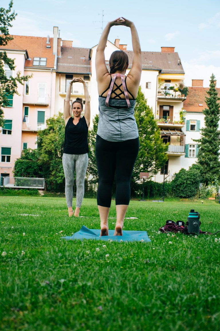 In der wärmeren Jahreszeit finden viele der Kurse auch outdoor statt. Sowohl im BG Pestalozzi als auch im ATG gibt es coole outdoor Flächen, die wir nutzen! Mit Blick in den blauen Himmel Bauchmuckis zu trainieren und zu relaxen motiviert meist sehr, auch bei Schwimmbad-Temperaturen in die Kurse zu kommen : -)